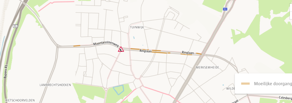 Door lokale herstellingswerken op de Ringlaan en Maantjessteenweg in Merksem (Antwerpen) is de doorgang van uitzonderlijke voertuigen moeilijk tot onmogelijk van woensdag 11 februari tot woensdag 11 maart 2026. Er wordt plaatselijk gewerkt, ter hoogte van de werken rijdt het verkeer over 1 rijstrook. Het verplaatsen van de bakens is NIET toegelaten. Gelieve tijdig een alternatieve reisweg te gaan verkennen en hiervoor een nieuwe aanvraag in te dienen.