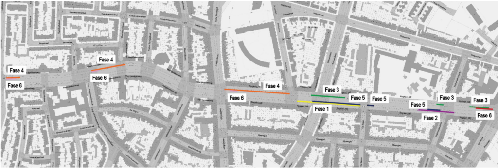 - Gemotoriseerd verkeer rijdt ter hoogte van de werken over één rijstrook. Er geldt een snelheidsbeperking van 30 km/h aan de werfzone. Als er op de kruispunten wordt gewerkt, zijn bepaalde afslagbewegingen niet mogelijk en wordt er een lokale omleiding voorzien.